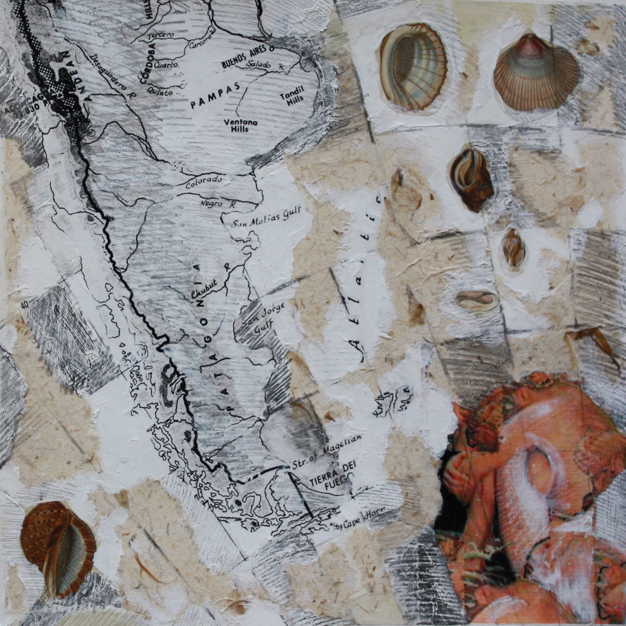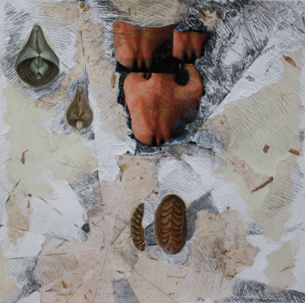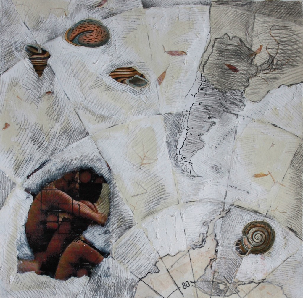 “Ponce de Leon’s pieces are searches for origins. Layered “collages” that use mixed mediums from pencil, charcoal, pastels, oil paint, ink and photographs create the illusion of a dreamy mysterious revelation. Her early studies of biology in college seem to have come together with her newfound fascination with human reproduction, as her newest series is a journey from conception to birth. Some of the images are hyper-realistic, paying great attention to anatomy and detail. Others seem to be half-conscious images from a dream, like ancient legends trying to wake up and share a message but unable to speak our language.”