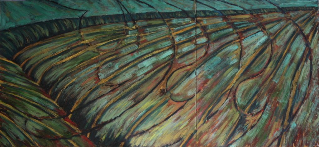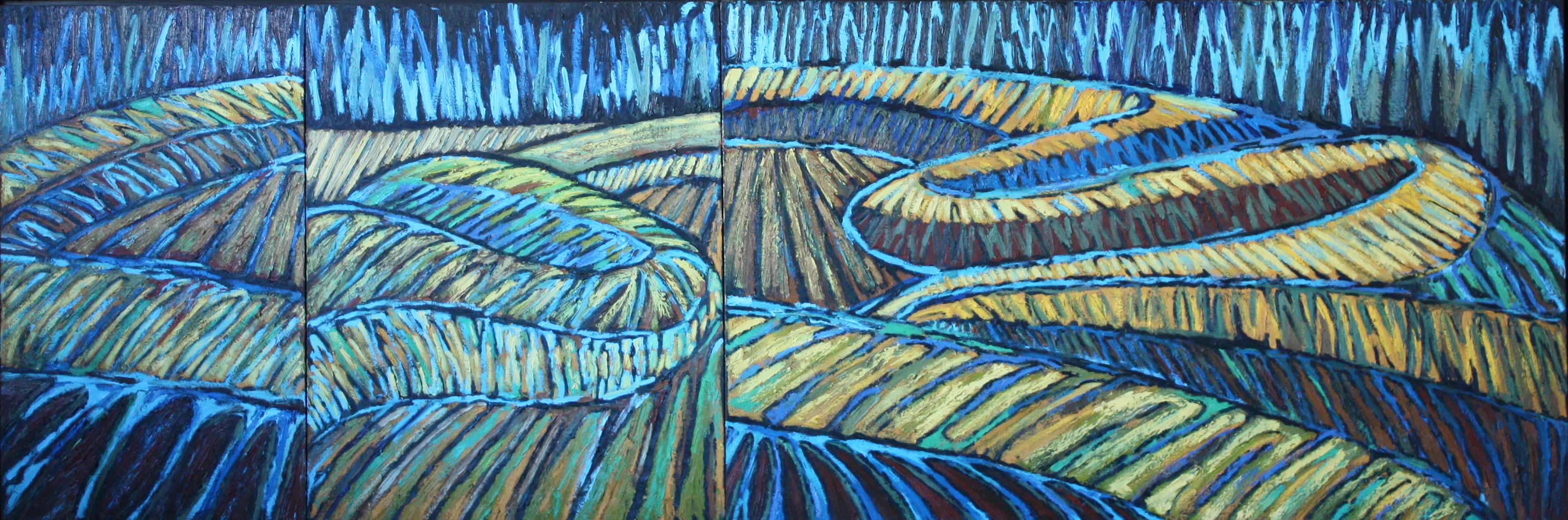 Ohio Mounds “Works from Mabi Ponce de Leon’s Mounds series offer thoughtful meditations on both time and place.” -Jeff Regensburger, ColumbusUnderground.com, 2012 Oil and mixed media on canvas / Woodcut and linocut on paper